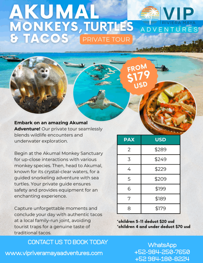 Embark on an amazing Akumal Adventure! Our private tour seamlessly blends wildlife encounters and underwater exploration.