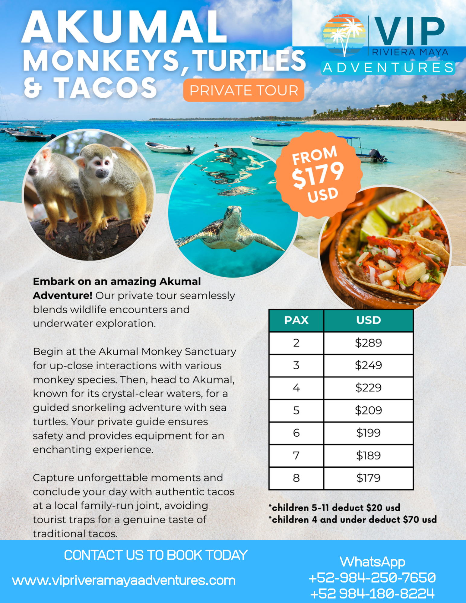 Akumal, Monkeys, Turtles and Tacos Private Tour
