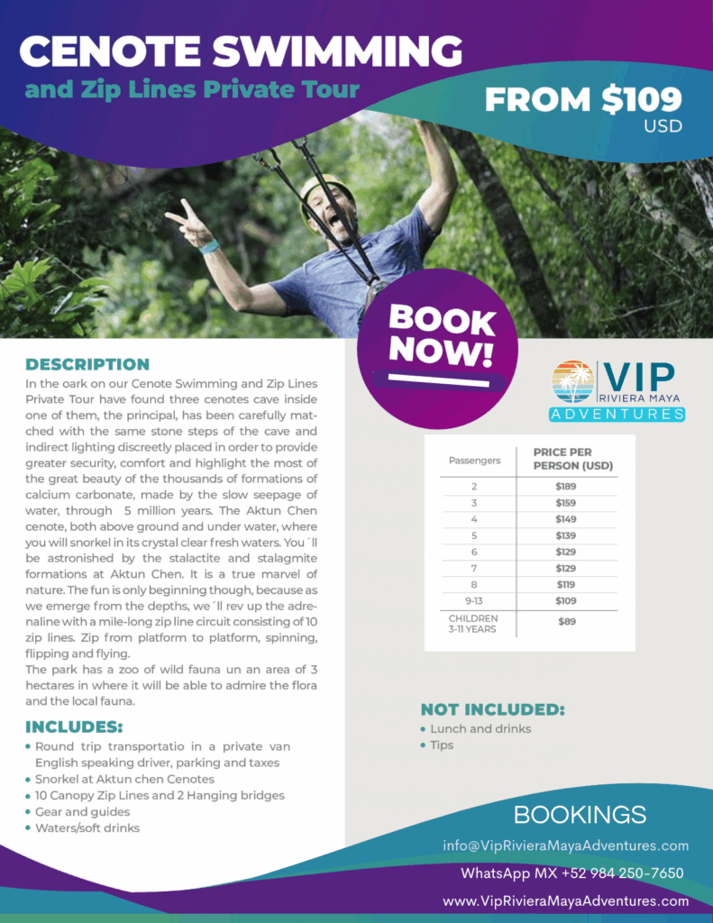 Trade ordinary tours for an UNFORGETTABLE duel with nature! VIP Riviera Maya Adventures delivers your private passport to Aktun Chen’s mystical underworld and a mile-long zip line circuit—where ancient cave wonders collide with adrenaline-pumping flight. No crowds. No compromises. Just pure, unfiltered magic.