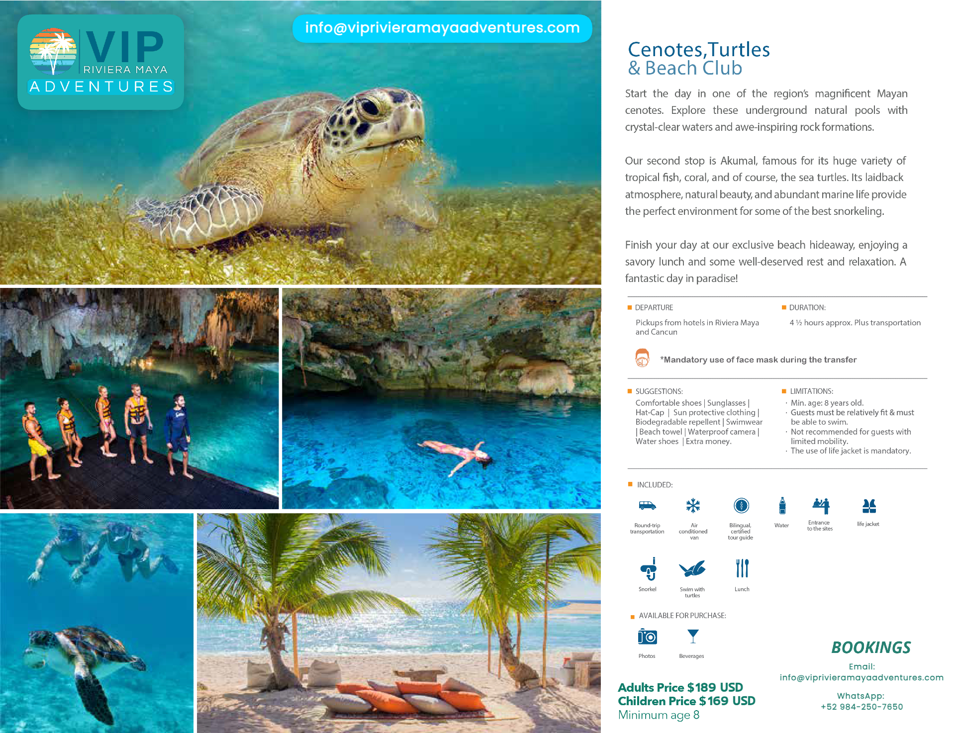 ✅ ALL FEES INCLUDED: Cenote entry, turtle snorkeling gear, beach club access, lunch & drinks