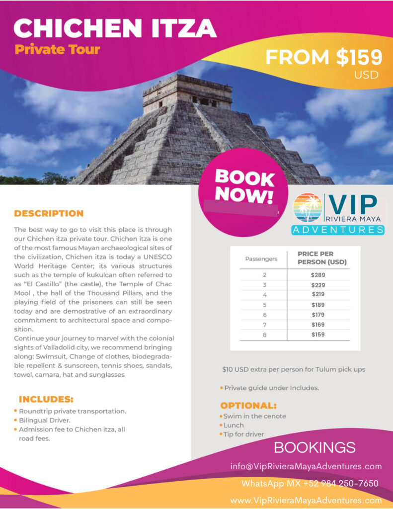 Ready to stand in the shadow of one of the Seven Wonders of the Modern World? At VIP Riviera Maya Adventures, we don’t just offer tours to Chichen Itza—we offer a sacred passage into the heart of the ancient Maya civilization. This is more than a trip; it’s a pilgrimage to a place where time stands still, gods walked the earth, and astronomical genius was carved in stone. As the #1 rated tour company in the Riviera Maya, we’ve perfected this journey to deliver awe, wonder, and memories that will last a lifetime.