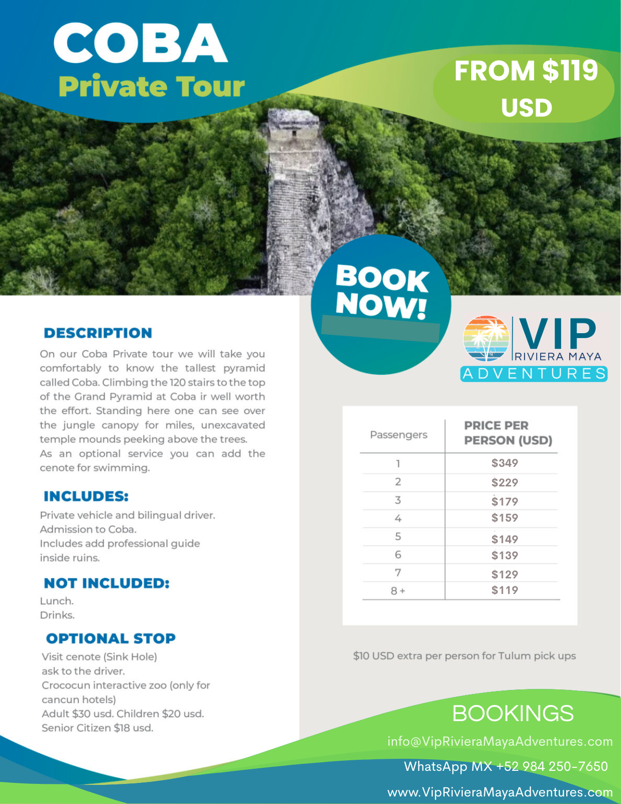 1. ⥠INSTANT BOOKING: www.VipRivieraMayaAdventures.com