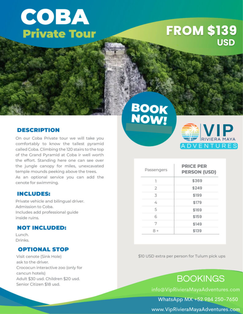 Ready to trade crowded paths for a private adventure deep into the heart of Maya mystery? At VIP Riviera Maya Adventures, we donât just give toursâwe grant you exclusive access to one of the YucatĂĄnâs most awe-inspiring sites. Get ready to explore the legendary ruins of CobĂĄ, where history whispers from every stone and the jungle canopy creates a cathedral of green.