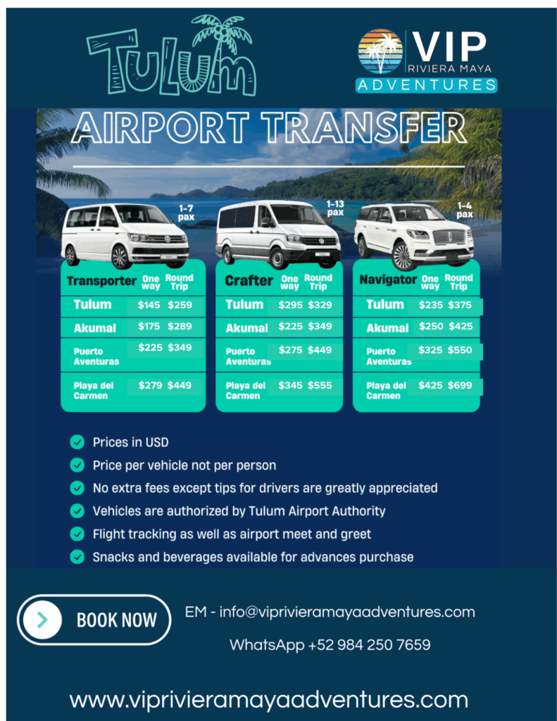 We only partner with high-end hotels, exclusive resorts, venues and transportation that offer the best in customer service. VIP Riviera Maya will always provide you with a number of options and ideas to help you curate the best trip ever for you and your crew. This area is lucky to be home of a number of unique and impressive eco-water parks and we have special tours to take you there! You can choose from many options like swimming with dolphins, boat trips, fishing, scuba and snorkel tours, nightclubs, restaurants, transportation options and more. Please contact me directly for any questions regarding these tours including pricing information.